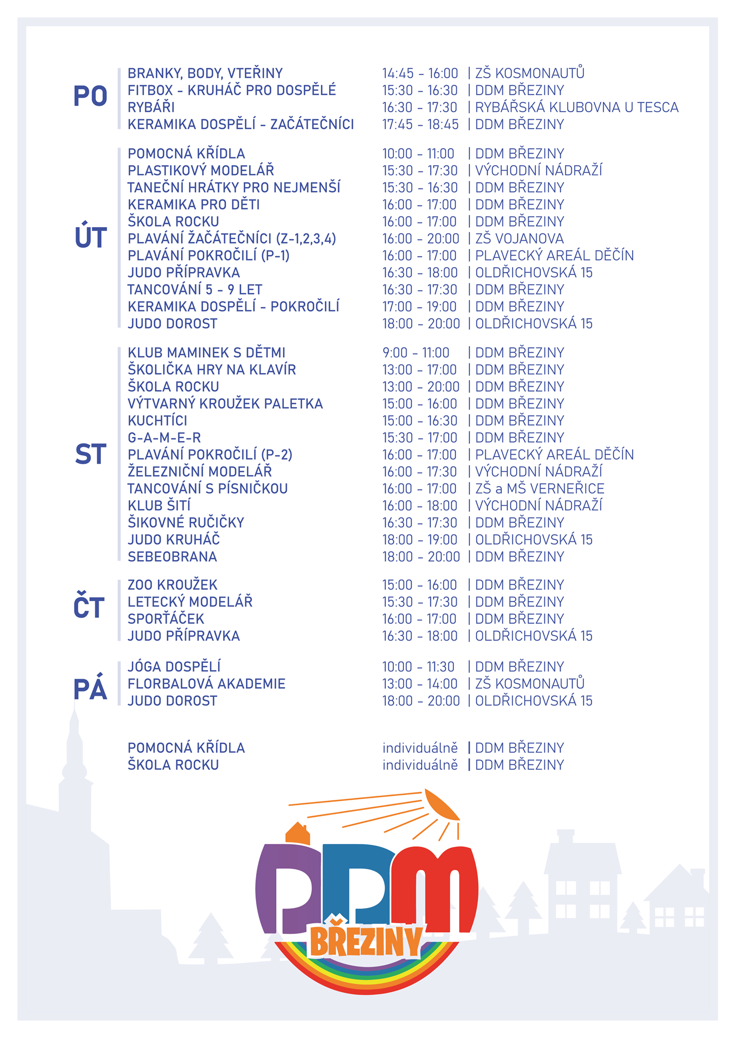 Je čas připomenout, jaké kroužky najdete v našich střediscích Boletice, Teplická, Březiny či Divišova. Každé středisko nám zaslalo svou aktuální nabídku a vy, pokud ještě nemáte, můžete tak vybrat pro vás nebo vaše děti ten správný kroužek.