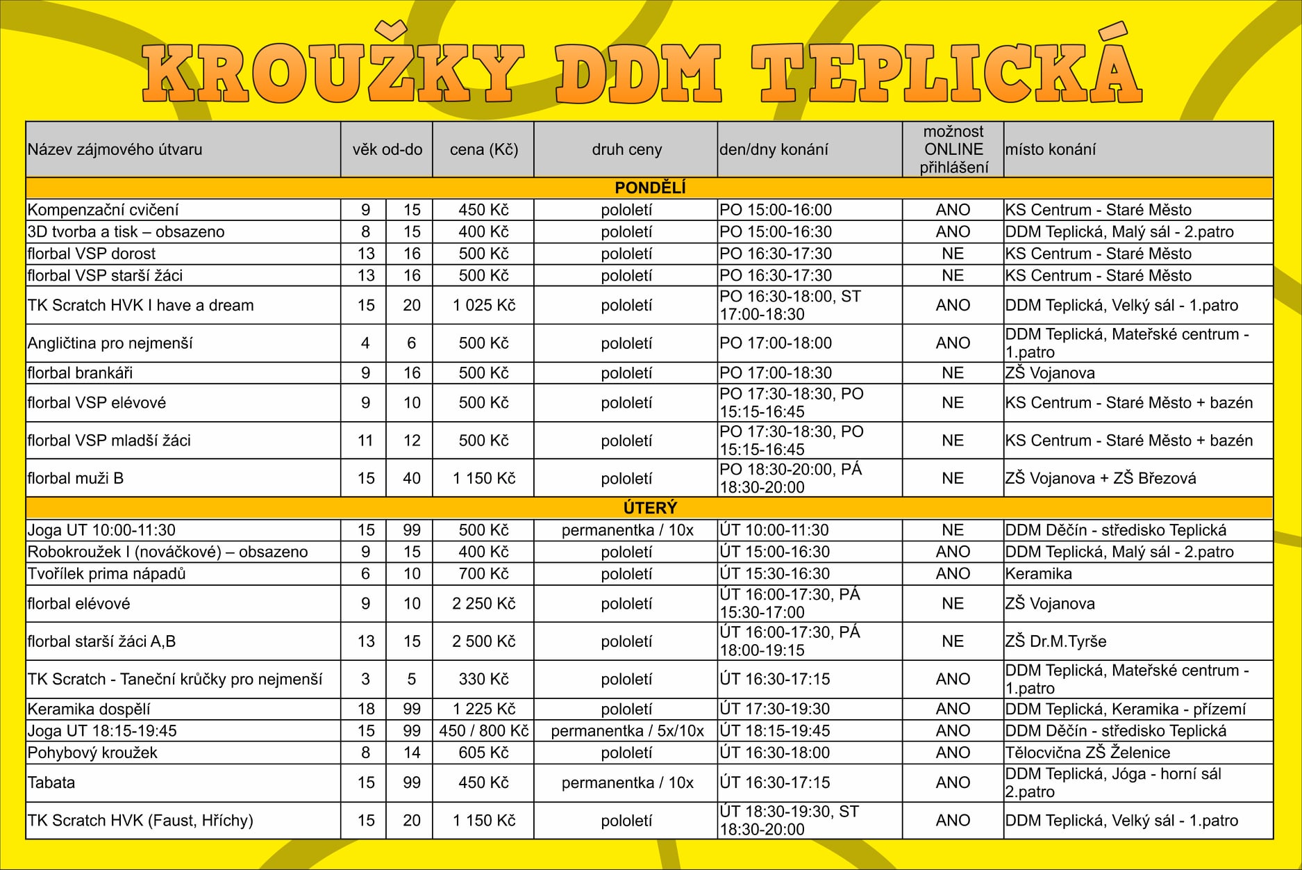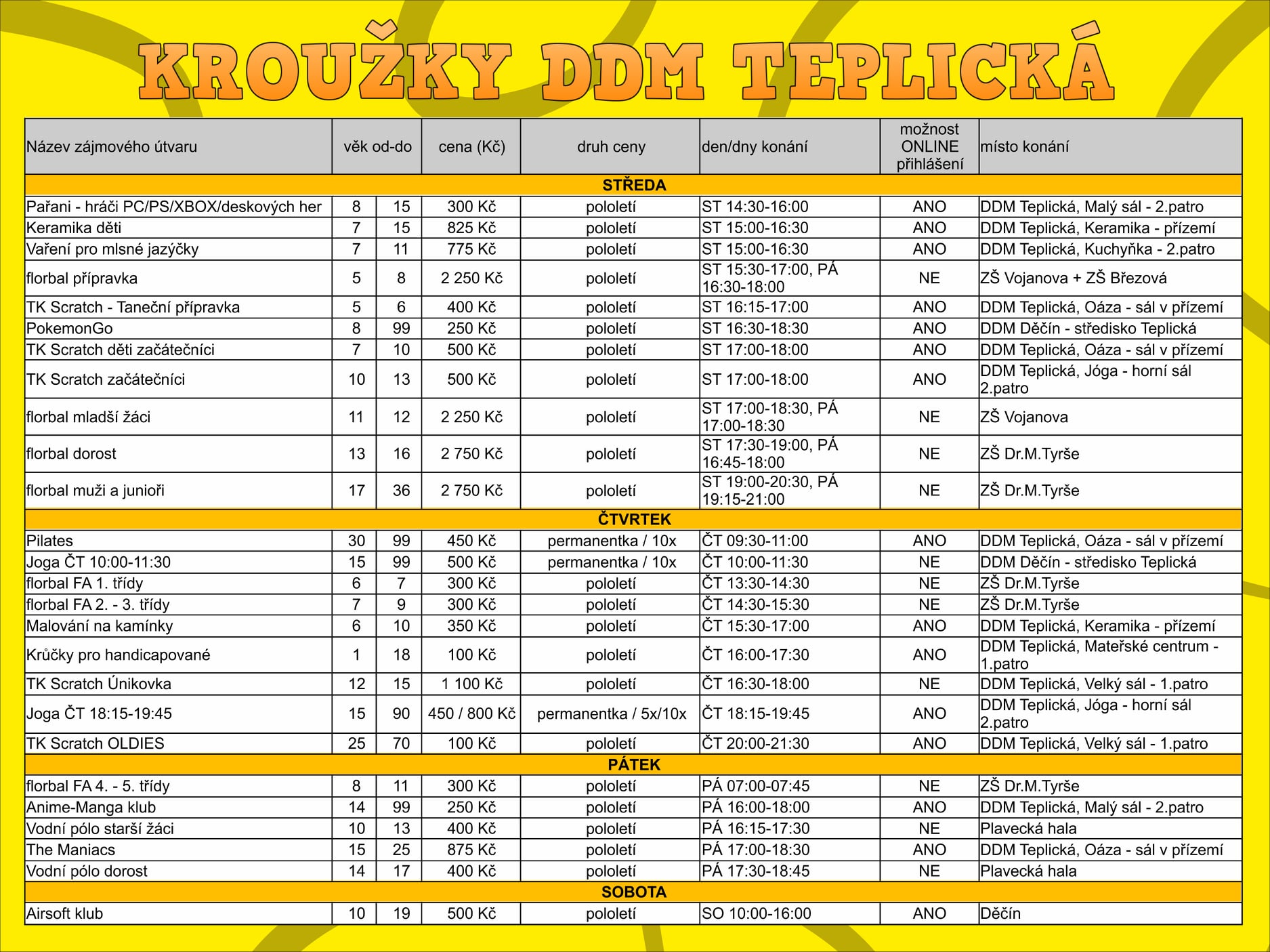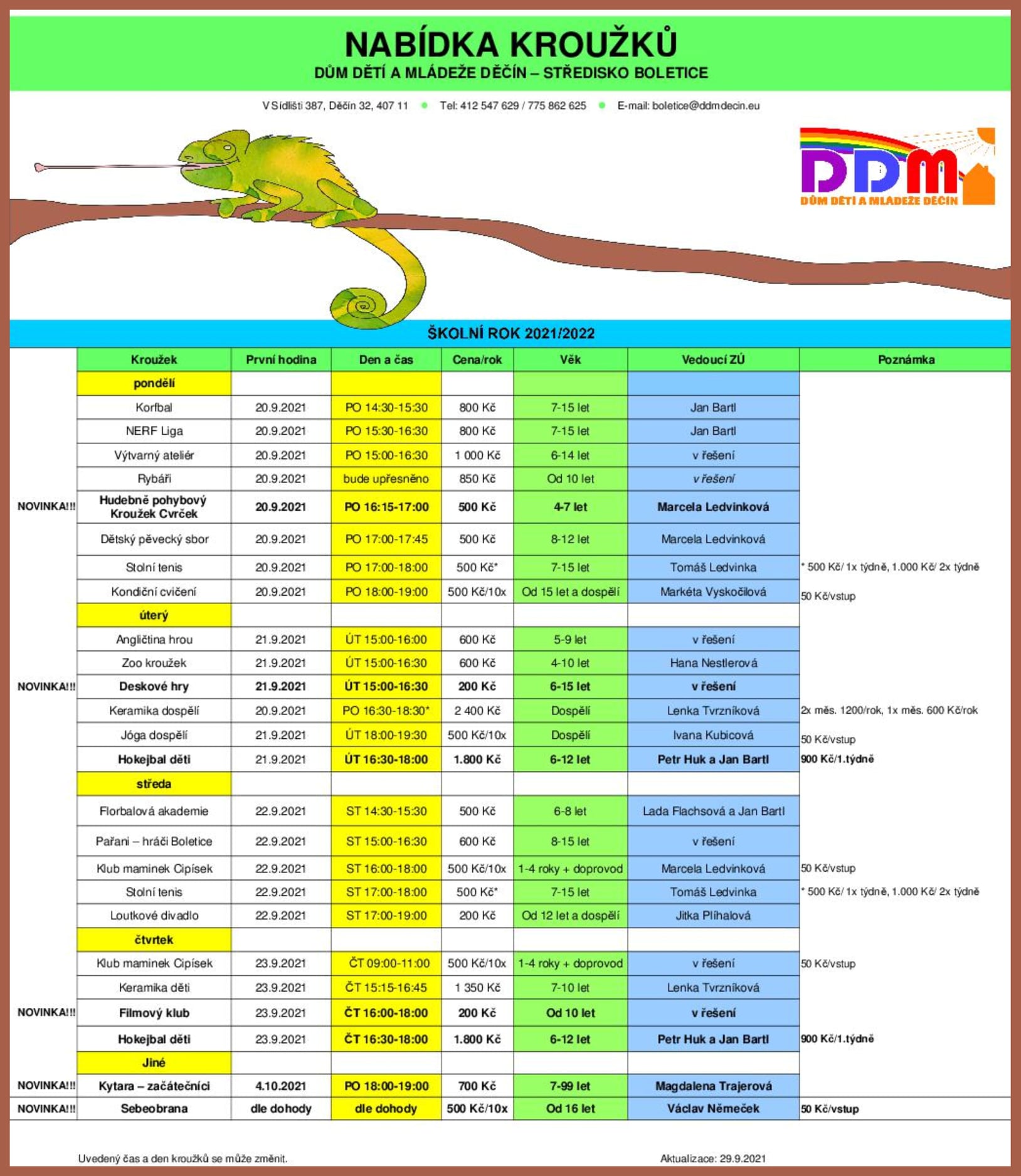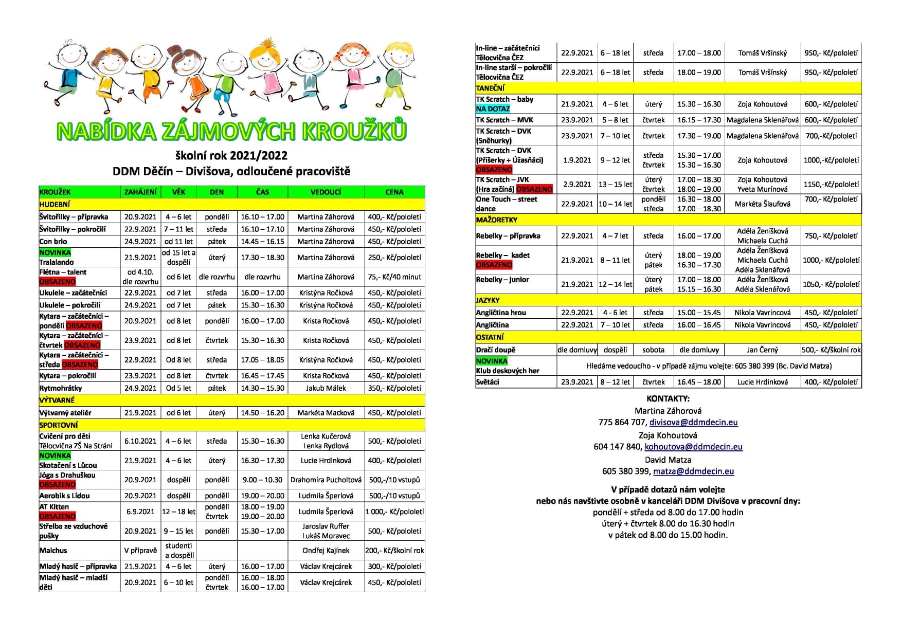 Řada kroužků již je plně obsazena, proto neváhejte! Více informací o kroužcích na www.ddmdecin.eu/krouzky a v přílohách.