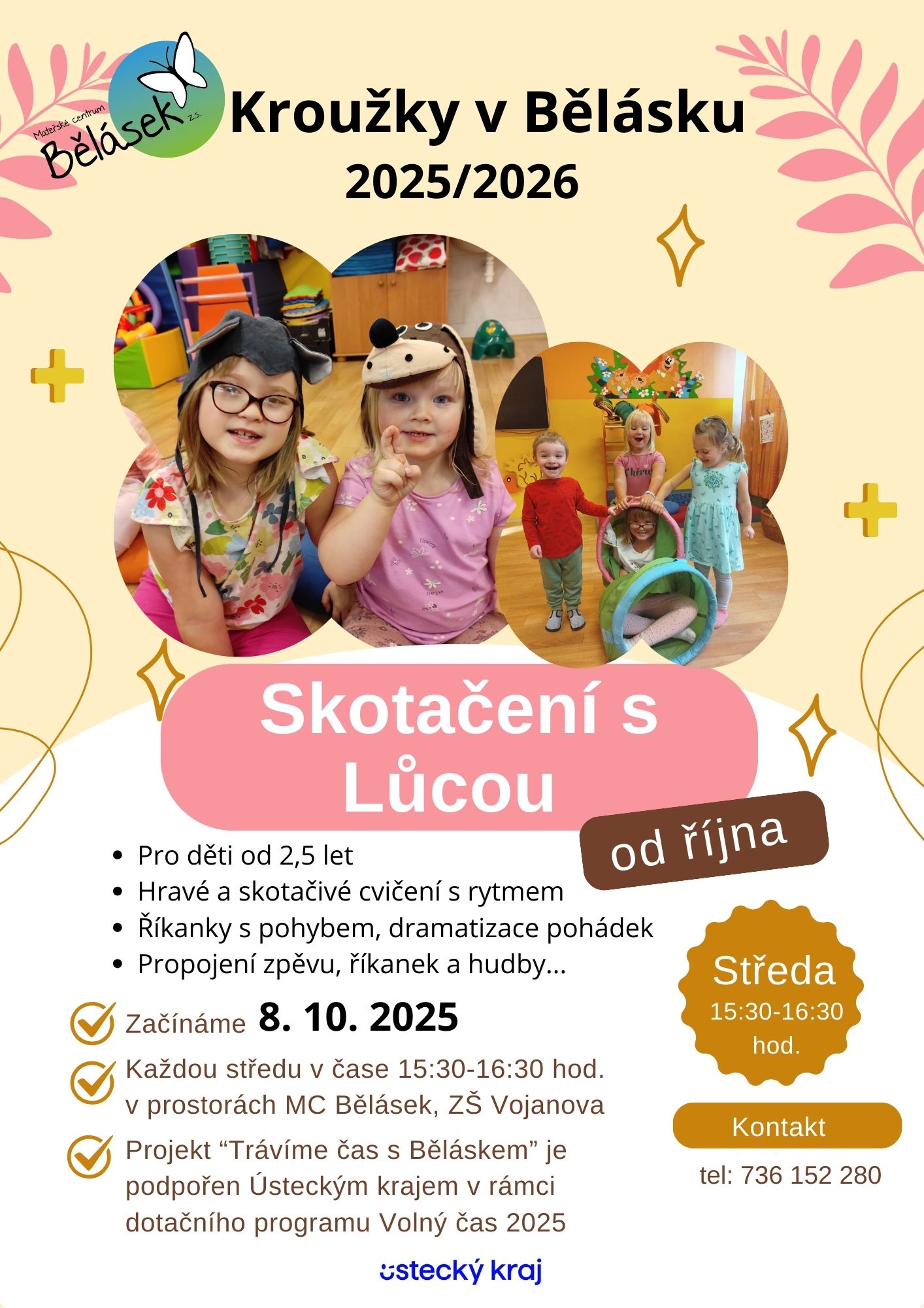 Jako každý rok si pro Vaše ratolesti připravilo Mateřské centrum Bělásek, z.s., řadu zajímavých kroužků. Můžete se přihlásit: