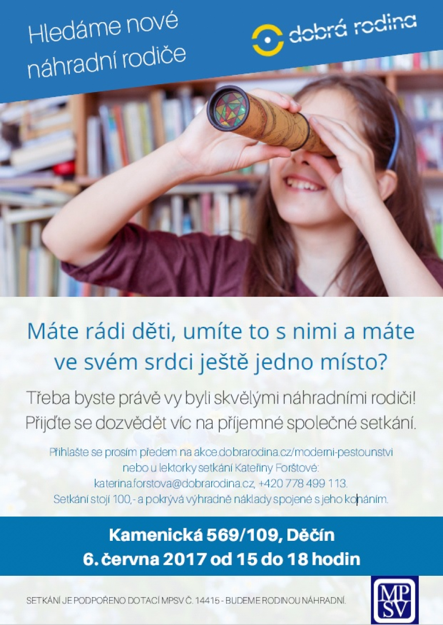 Třeba byste právě vy byli skvělými náhradními rodiči! Přijďte se dozvědět víc na příjemné společné setkání.