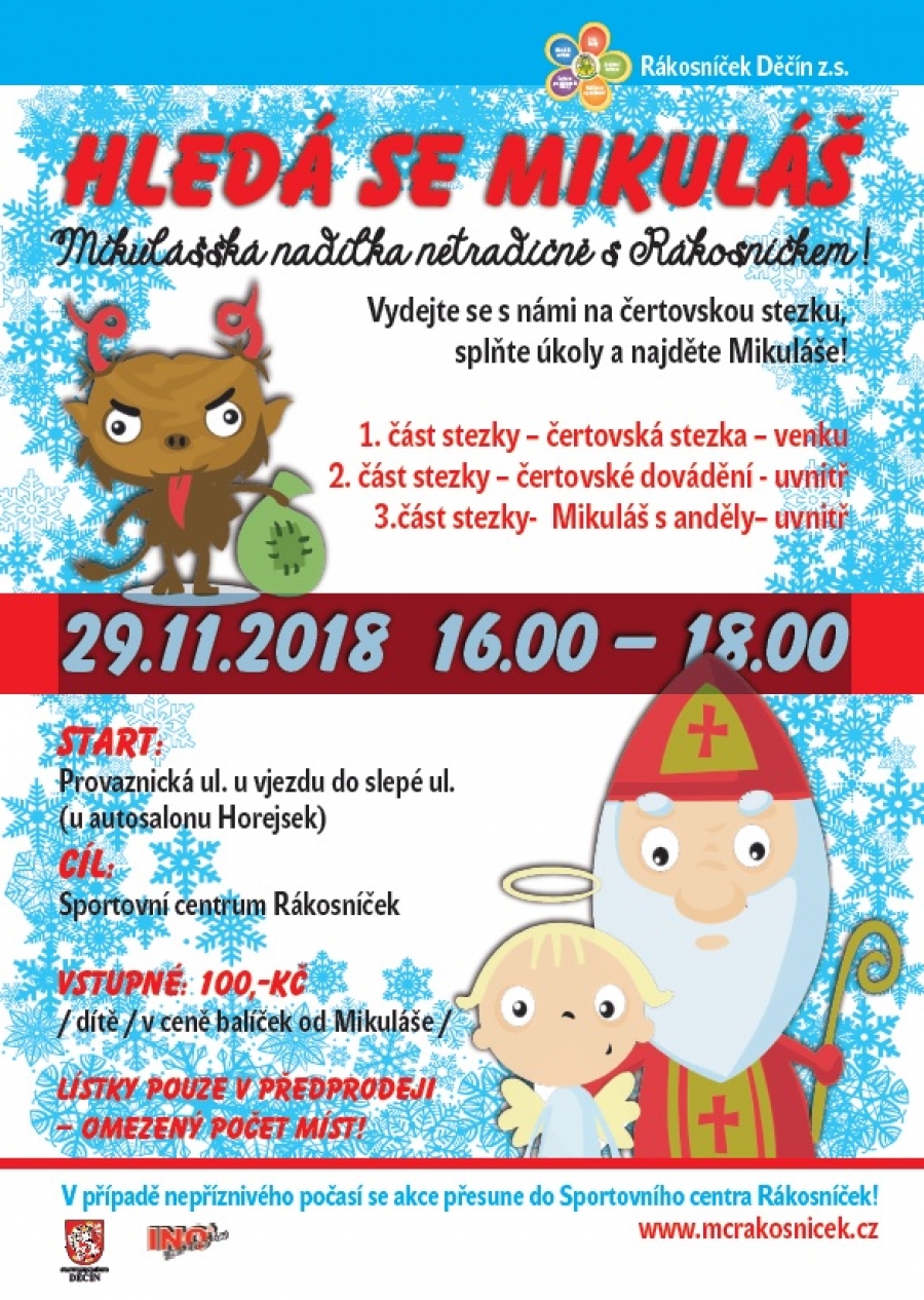 Vydejte se s námi na čertovskou stezku, splňte úkoly a najděte Mikuláše! Více info v přiloženém letáku.