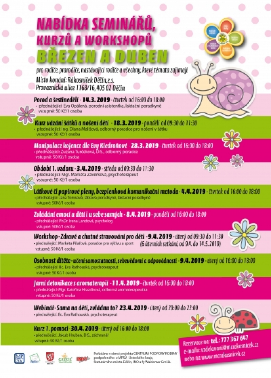 I na březen a duben si Rákosníček Děčín připravil semináře, kurzy a workshopy, které pořádá nejen pro rodiče.