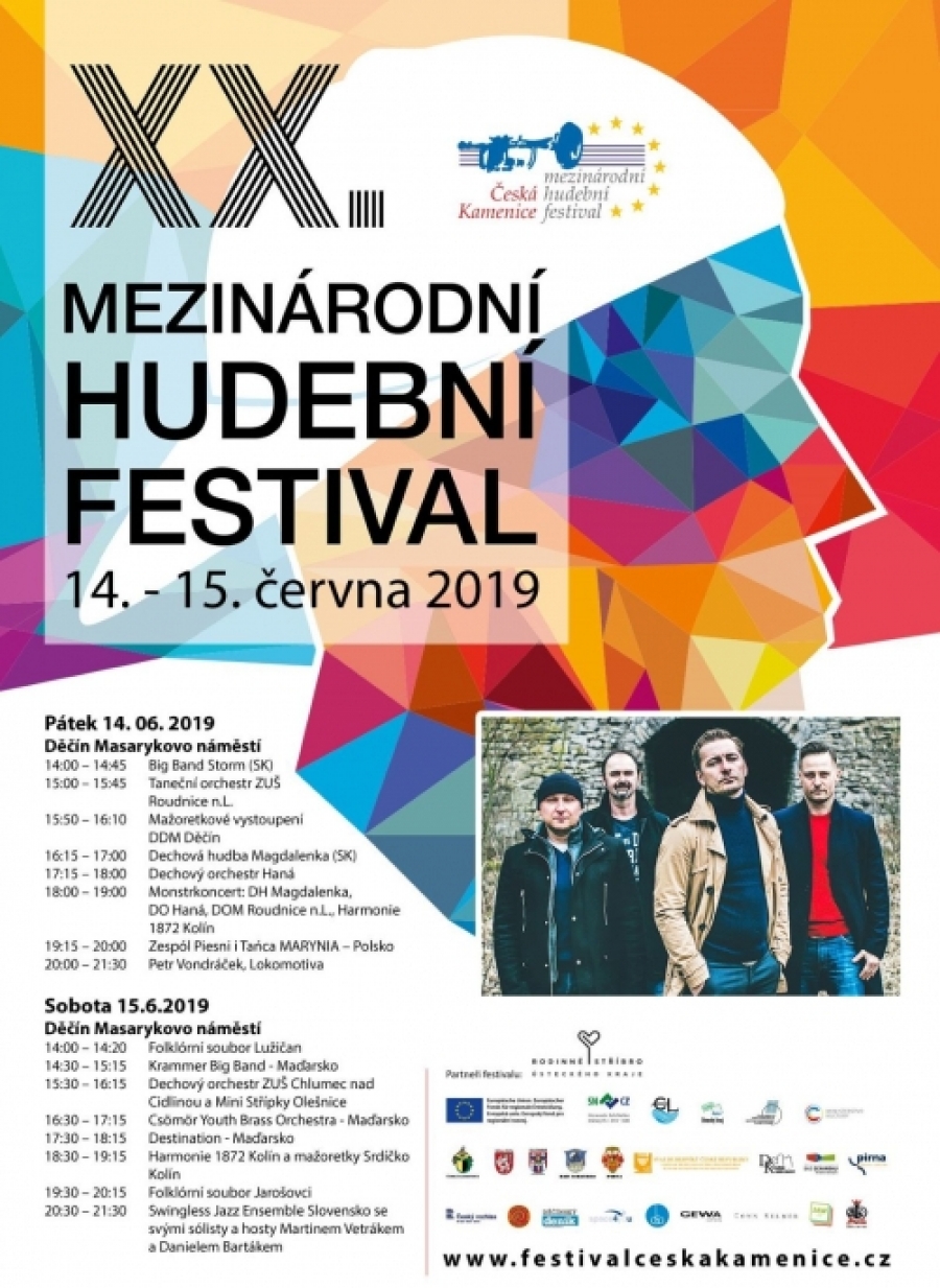 Na program v rámci Mezinárodního hudebního festivalu Česká Kamenice 2019 se můžete těšit i v Děčíně. V pátek 14. června a v sobotu 15. června se na Masarykově náměstí představí big bandy, dechové orchestry a folklorní soubory z Česka i zahraničí. Páteční program uzavře skupina Lokomotiva s Petrem Vondráčkem a sobotní pak Swingless Jazz Ensemble Slovensko se svými sólisty a hosty Martinem Vetrákem a Danielem Bartákem. Nenechte si ujít tento zajímavý hudební zážitek. Více informace o festivalu a kompletní program najdete na www.festivalceskakamenice.cz.