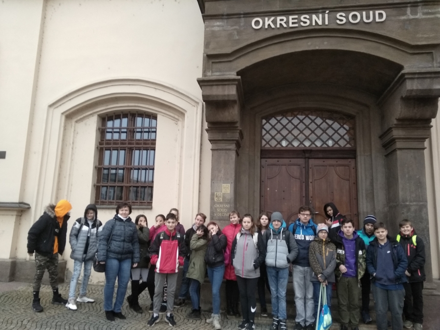 V pondělí 13. ledna navštívili žáci a žákyně 7. A ZŠ Boletice Okresní soud v Děčíně. Třída se účastnila soudního jednání ve věci trestní a sledovala při práci paní soudkyni, státního zástupce, obhájce, ale také pracovníky justiční stráže či vězeňské služby. Soudní líčení se týkalo trestných činů krádeže a žáci zhlédli vynesení rozsudku ve věci zcizené platební karty. Druhý obžalovaný byl shledán vinen z trestného činu krádeže, byl odsouzen a i u tohoto případu jsme vyslechli vynesení rozsudku. Po skončení hlavního líčení dala paní soudkyně ještě prostor pro to, aby se žáci mohli ptát na to, co je v souvislosti s jejím povoláním zajímá. Mimo jiné jsme se dozvěděli, jakým způsobem probíhá eskorta vězňů k soudu, jaký druh věznic v České republice existuje, apod. Paní soudkyně byla velice milá a vstřícná. Děkujeme za novou zkušenost.