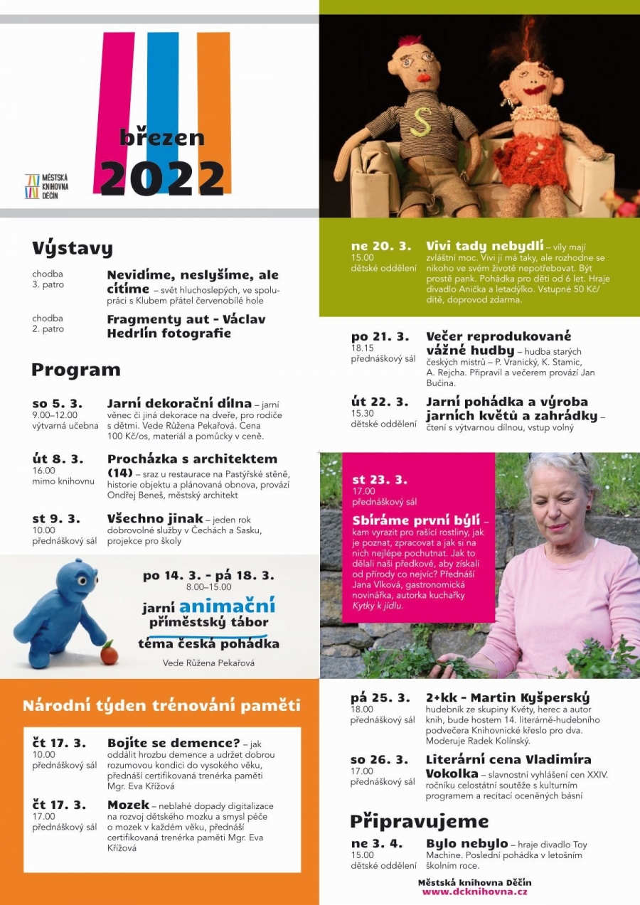 Městská knihovna Děčín i na březen připravila program pro veřejnost, své si najdou jak děti, tak dospělí.