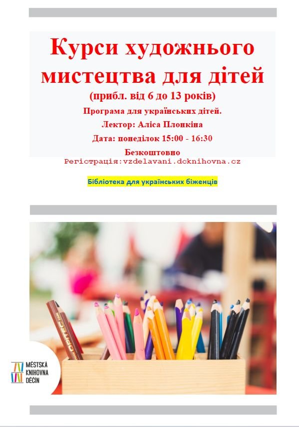 Zatím je v nabídce ukrajinským matkám a starším dětem docházení na kurz Technika kresby, ukrajinským dětem docházení na dětskou výtvarku a na keramické kurzy, viz letáky v příloze.