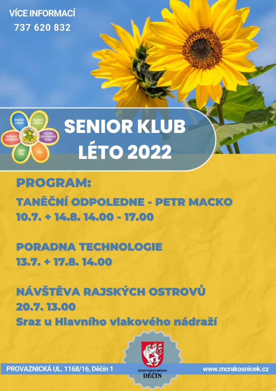 Ani přes prázdninové měsíce Senior klub nezahálí a má připraven program, aby se senioři nenudili.