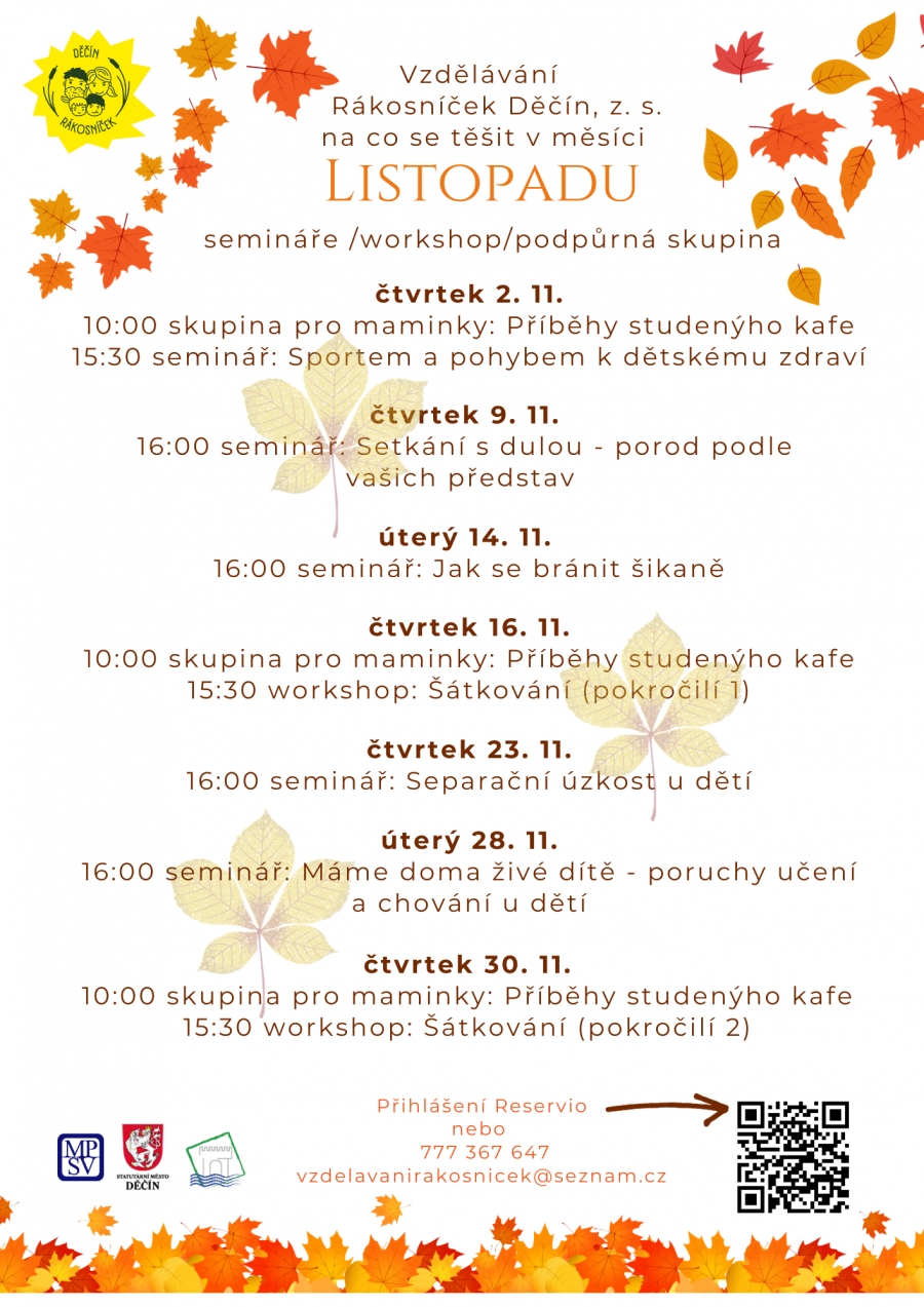Listopadové semináře, workshopy a setkání nejen u kávy viz leták.
