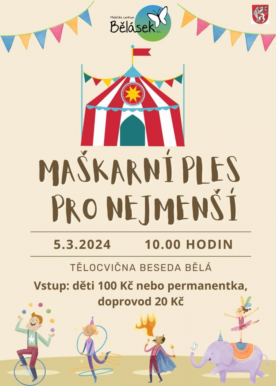 Oprašte kostýmy! Mateřské centrum Bělásek pořádá Maškarní pro nejmenší.