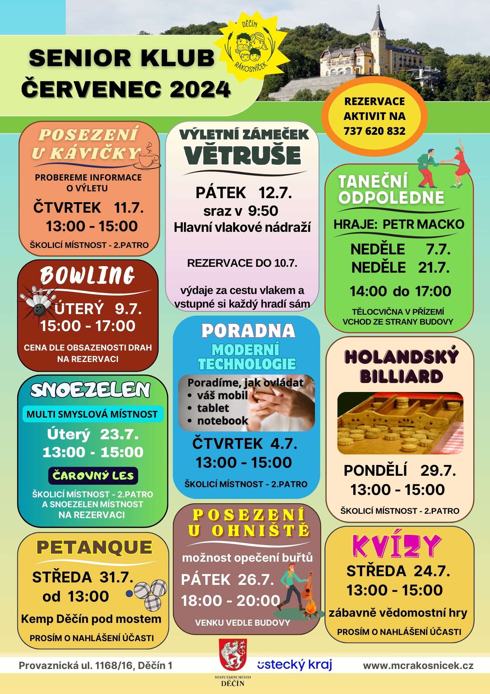 Přes léto senior klub v Rákosníčku nezahálí, na červenec i srpen je připraven bohatý program.