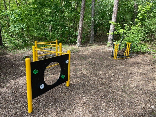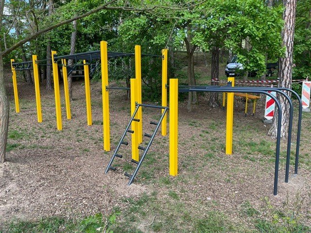 Popis dětské workoutové hřiště na kraji lesa
